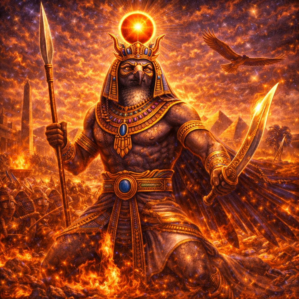 Монту — один из самых мощных и недооценённых богов египетского пантеона. Он объединяет в себе соколиную высоту, бычью ярость, солнечную энергию и царскую волю к победе. Он был богом войны, но не хаоса; богом силы, но не бессмысленного разрушения; богом царя, который должен не просто носить корону, а доказывать её право на существование.
