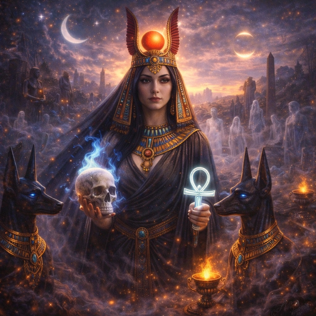 Нефтида — одна из самых загадочных и сильных богинь египетского пантеона. Она не ослепляет светом и не подавляет яростью. Её власть — тихая, сумеречная, пограничная. Она сопровождает мёртвых, помогает собирать разрушенное, защищает душу в переходе и не даёт памяти исчезнуть.