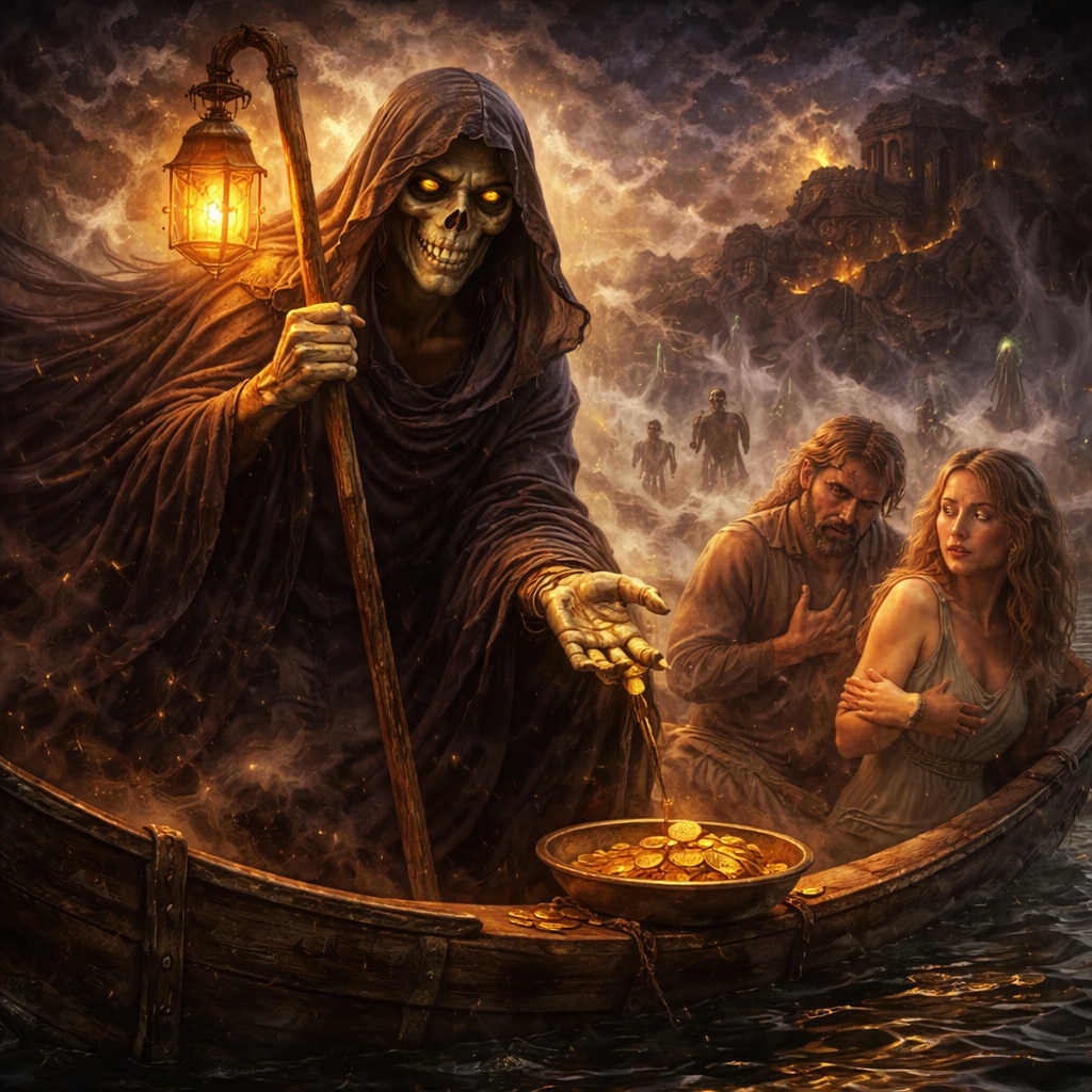 В античном мире смерть не заканчивалась пустотой. За последним вдохом начинался путь. Тёмная река, холодный берег и фигура, которую невозможно перепутать ни с кем.