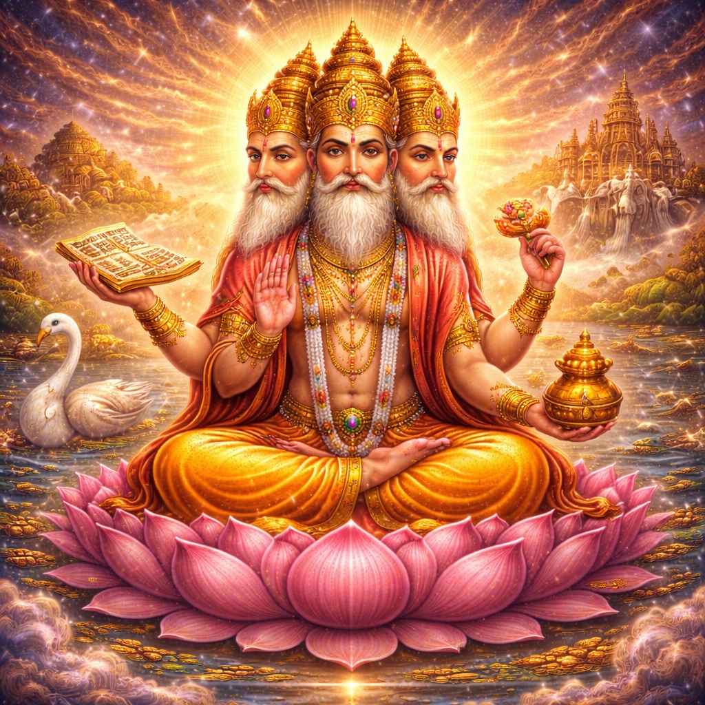 Брахма — один из великих богов индуистского мира, связанный с сотворением вселенной, возникновением форм, рождением космоса и началом проявленного бытия. В рамках идеи Тримурти именно он отвечает за создание, тогда как Вишну сохраняет мир, а Шива разрушает его, чтобы цикл мог начаться заново.