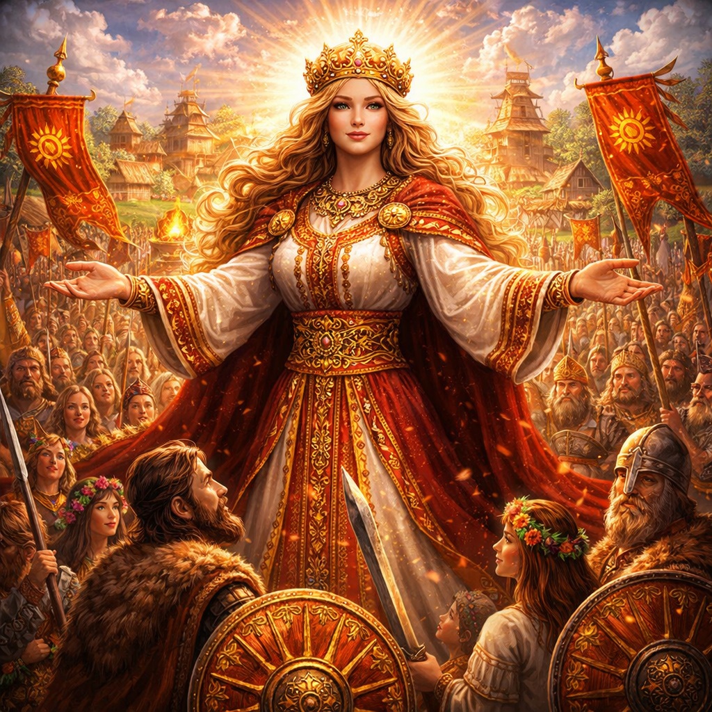 Политика никогда не держится только на мече. Ей нужны и другие святыни: порядок, согласие, наследование, брак, верность, плодородие, мир внутри общины, красота легитимной формы. С войной обычно всё ясно — для неё есть гром, щит, клятва, удар. А вот кто отвечает за то, чтобы общество не пожирало само себя, чтобы брак был не просто союзом тел, а союзом домов, чтобы род продолжался, чтобы община чувствовала себя цельной? Вот здесь и появляется пространство для Лады. Даже если её древний культ как факт спорен, её символическая функция как покровительницы согласия и общественной гармонии слишком логична, чтобы ею не воспользовались.