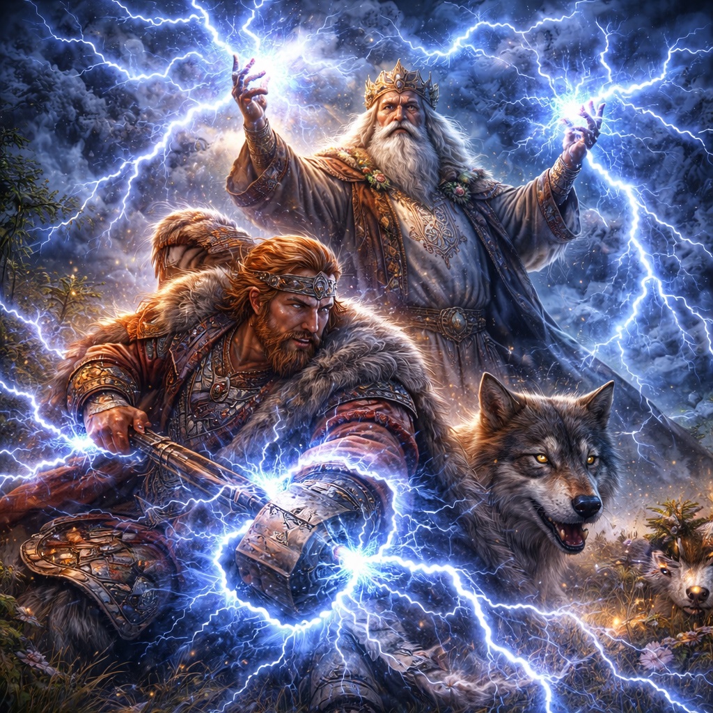 И вот тут особенно хорошо видно, как дешёвый интернет портит мифологию. Люди любят списки из семи, десяти, двенадцати “богов грома”, потому что список создаёт видимость знания. Но знание как раз начинается там, где ты способен признать неприятную вещь: в славянской традиции всё устроено сложнее, живее и менее удобно. Гром — не отдельная игрушечная функция. Это часть целого небесного порядка, и потому один образ может вырастать из другого, а поздняя память — перераспределять старые силы.