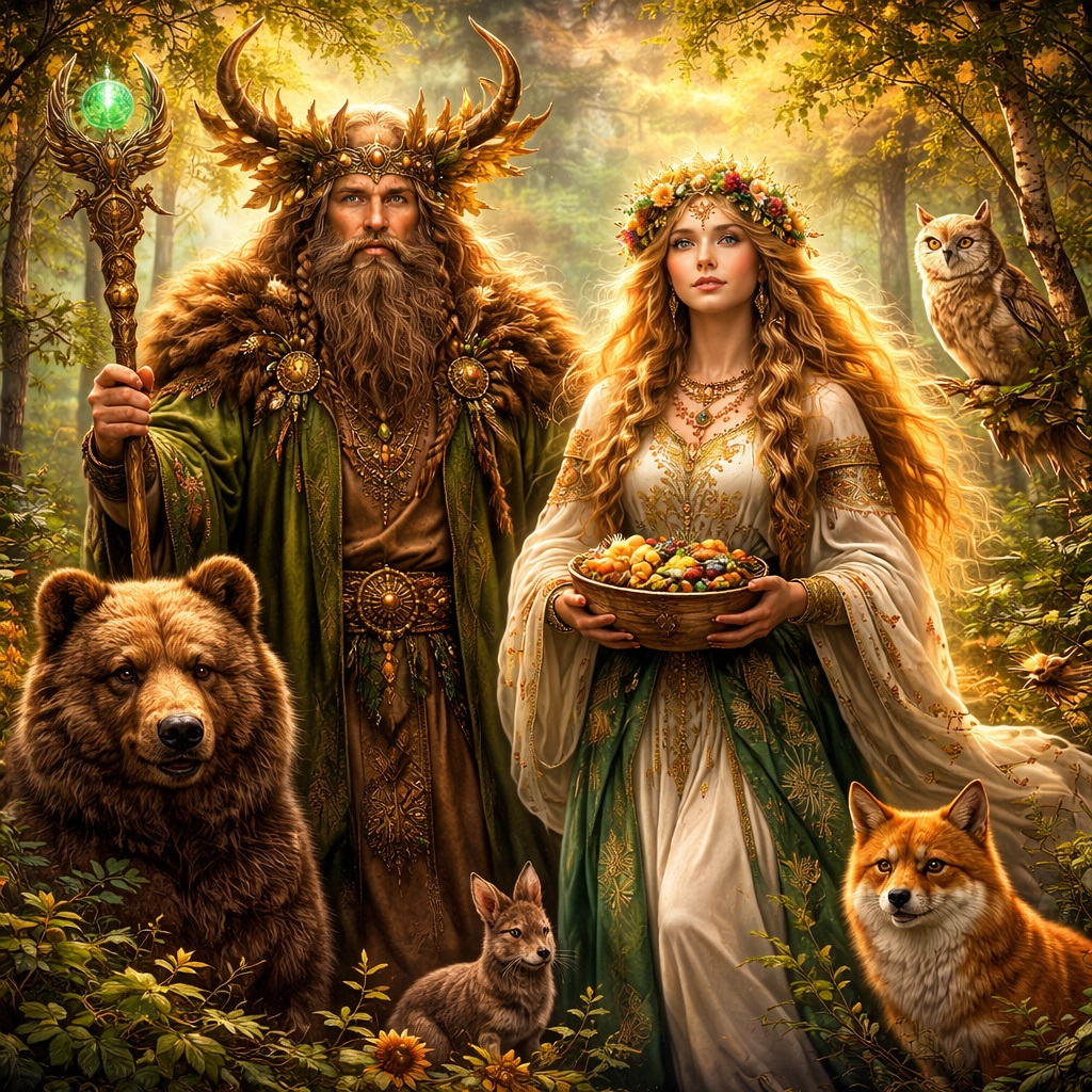 На верхнем, божественном уровне ближе всего к звериному, шерстяному и земному миру стоит Велес — бог скота, богатства, нижней живой силы и темной глубины мира. На уровне конкретной чащи власть принадлежит лешему — лесному хозяину, защитнику диких животных и распорядителю добычи. А в поздней западнославянской традиции особенно выразительно выступает Девана — спорная, но сильная богиня дикого леса, зверя и охоты.