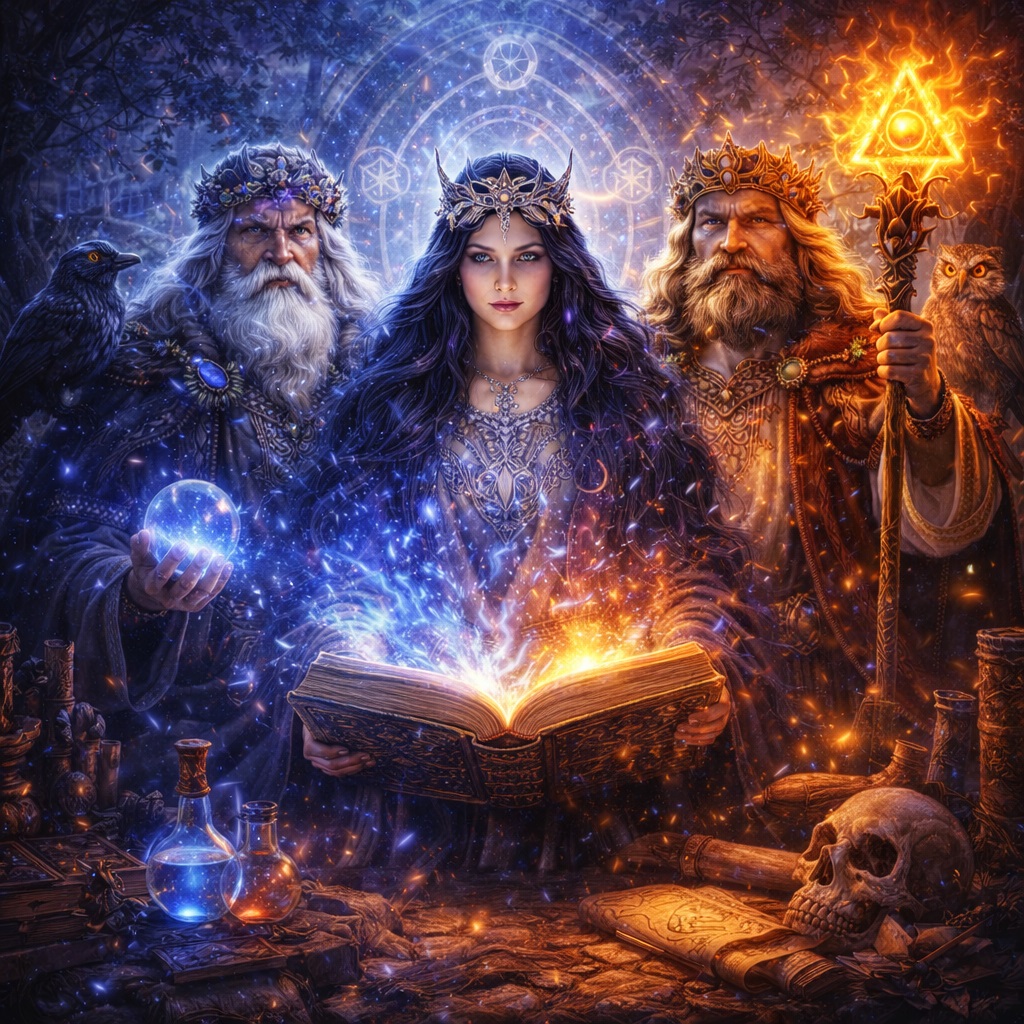 Славянские Боги тайных знаний — это не один персонаж и не удобная энциклопедическая подпись. Это целый круг божественных сил, каждая из которых хранит свой уровень скрытого. Велес владеет магией слова, пророчеством, смертью и знанием иного мира. Макошь держит в руках нить судьбы, ночную тайну прядения и скрытую власть над долей. Триглав соединяет небо, землю и подземье, а значит — знает устройство мира целиком. И именно поэтому тайное знание у славян всегда было не книжным, а судьбоносным. Не теорией, а силой. Не безопасной подсказкой, а прикосновением к тому, после чего человек уже не может оставаться прежним.