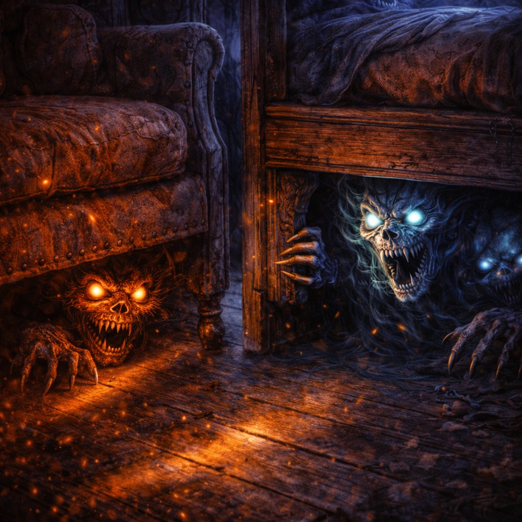 Те, кто прячется в тенях мебели, — один из самых недооценённых и при этом самых липких образов фольклорного страха. Это не ночные демоны, не лесные духи и не потусторонние гости извне. Это внутридомовые сущности, связанные не с местностью, а с предметами, которые человек сам впустил в своё пространство.
