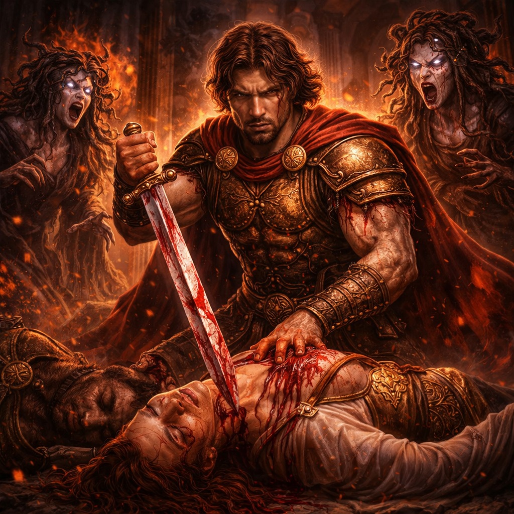 Вот здесь механизм кровной мести раскрывается предельно ясно. Кровная месть работает не как завершение справедливости, а как её бесконечное самопоедание. Ты мстишь за кровь — и сам становишься новым кровником. Ты исполняешь долг — и в тот же миг рождаешь новую вину. Эринии в этом смысле не просто «страшные богини». Они персонифицируют саму невозможность выйти из круга родственного убийства невиновным. Encyclopedia.com прямо подчёркивает, что Фурии олицетворяют и импульс мести, и чувство вины, связанное с пролитием родной крови.