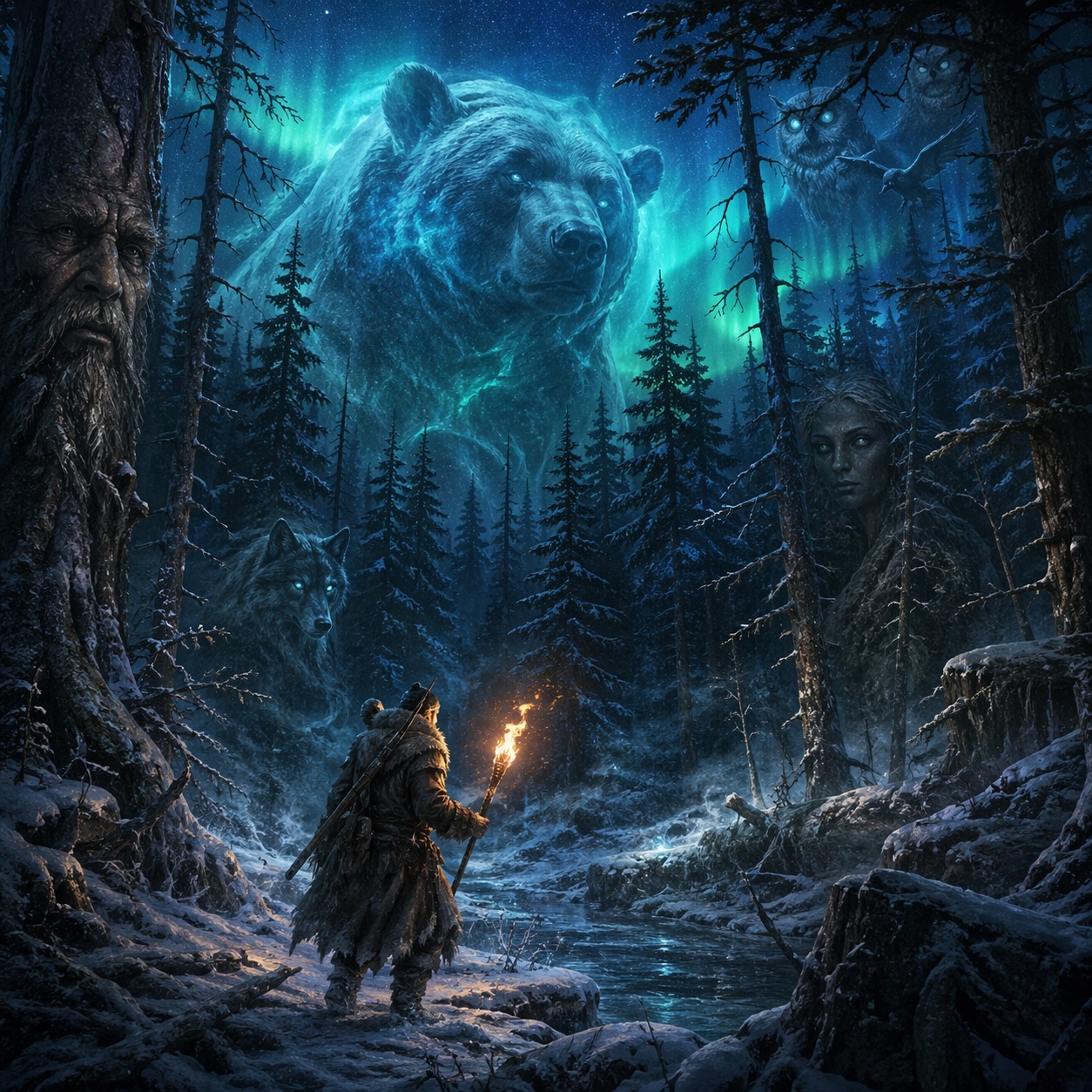 Но, пожалуй, самый честный ответ будет таким: за охотником в сибирской тайге следит сама тайга как целое. Не один конкретный “лесной дед” из сказки, а вся живая ткань мира — зверь, огонь, запретное место, небо, река, духи и память предков. Именно поэтому сибирские мифы так плохо поддаются упрощению. Они не дают назвать одного “главного духа” и успокоиться. Они заставляют признать, что мир вокруг человека смотрит на него сразу многими глазами.