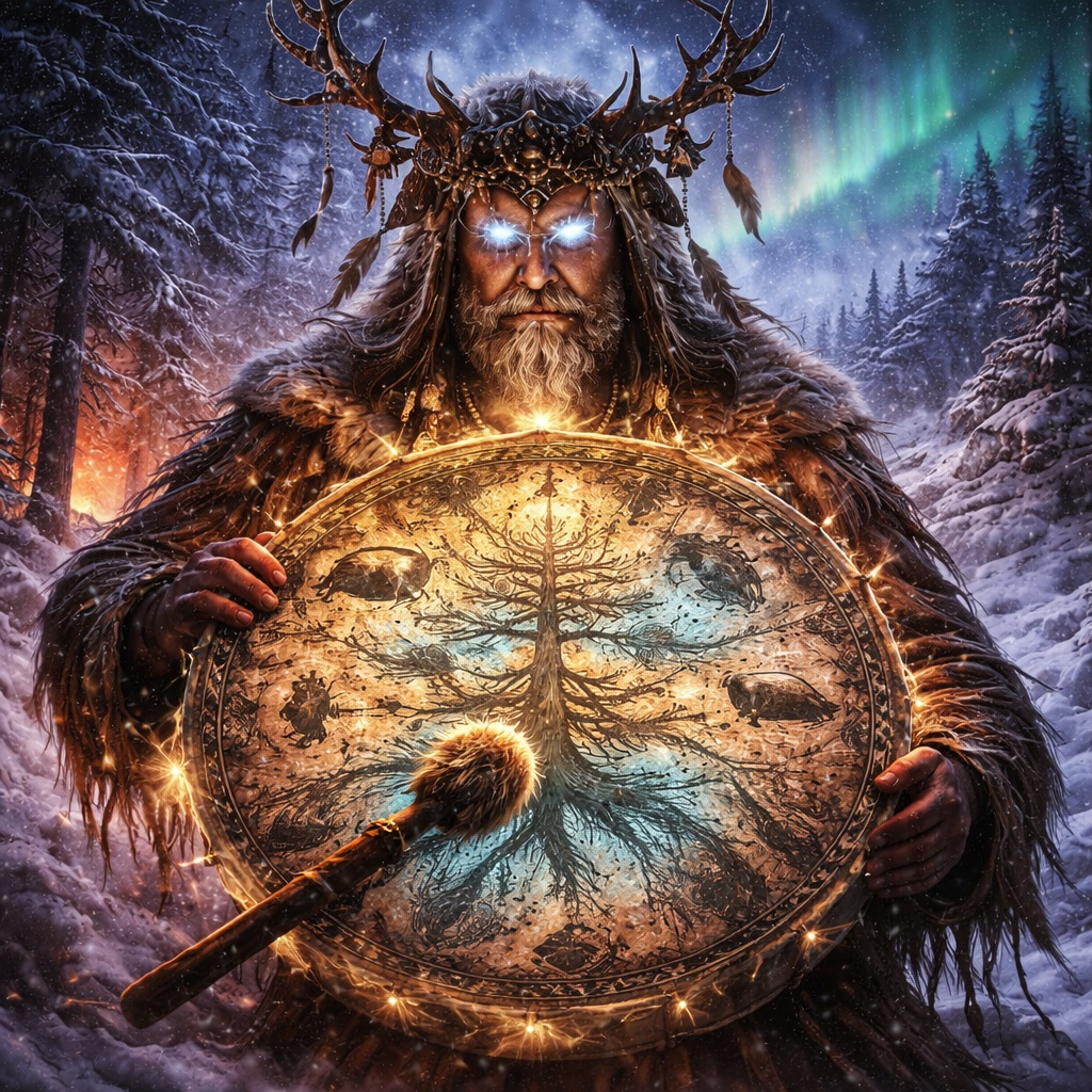 Потому что в глубине души современный человек всё ещё чувствует: карта — это не только то, что нарисовано, но и то, что звучит. Ритм может вести. Голос может открывать пространство. Повторяющийся удар может менять состояние сознания. И когда мы читаем о том, что шаманский бубен у сибирских народов называли конём или лодкой, что его делали из особого дерева, что кожа животного на нём оживала в ритуале, что на нём изображали миры, звёзды, дороги и входы в нижние области, становится ясно: перед нами не “фольклорный инструмент”, а один из самых сильных предметов всей северной духовной традиции.